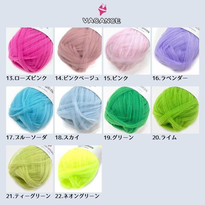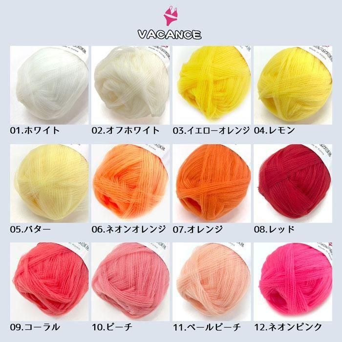 VACANCE バカンスヤーン 撥水チュールヤーン 60g 約70m 韓国毛糸 ネオンカラー ネオンオレンジ ネオンピンク ネオンイエロー かわいい