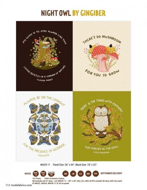 【Moda-k モダ】Night Owl-48423-11(3A-05)切り株 きのこ かたつむり 森 クリーム系 シーチング 110cm幅