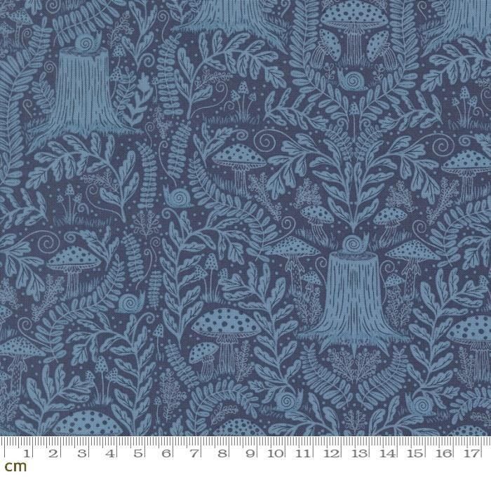 【Moda-k モダ】Night Owl-48423-14(3A-05)切り株 きのこ かたつむり 森 ブルー系 シーチング 110cm幅