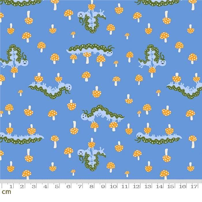 きのこ いもむし 昆虫柄 植物 ポップ かわいい カラフル シーチング 110cm幅 パッチワーク ハンドメイド ルビースター