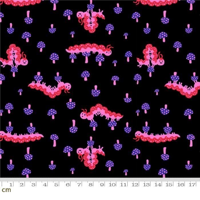 きのこ いもむし 昆虫柄 植物 ポップ かわいい カラフル シーチング 110cm幅 パッチワーク ハンドメイド ルビースター