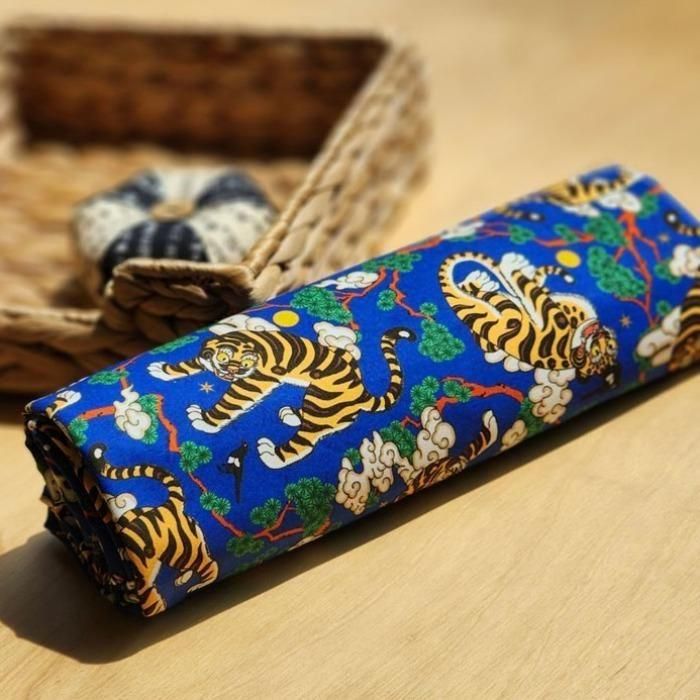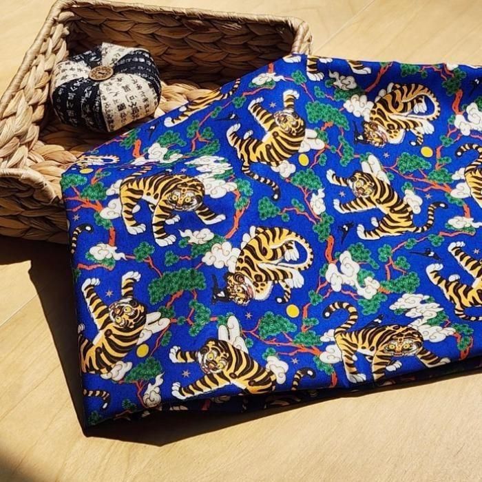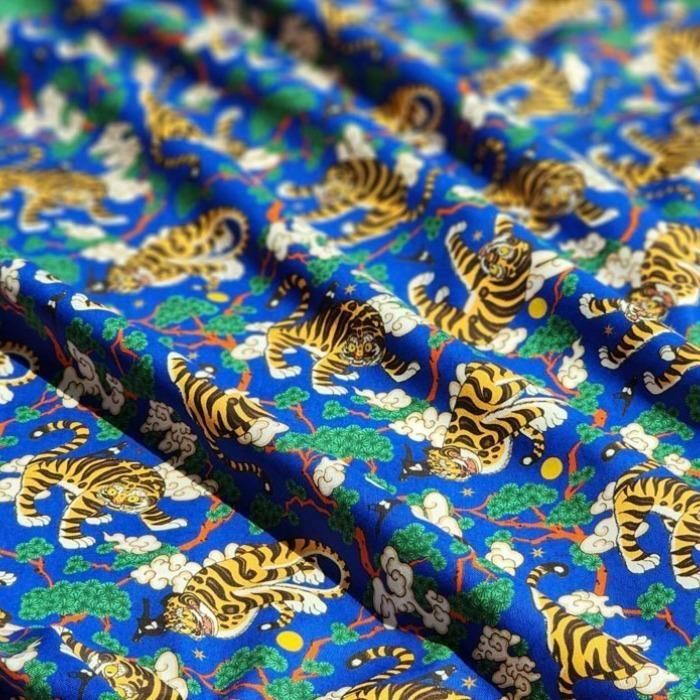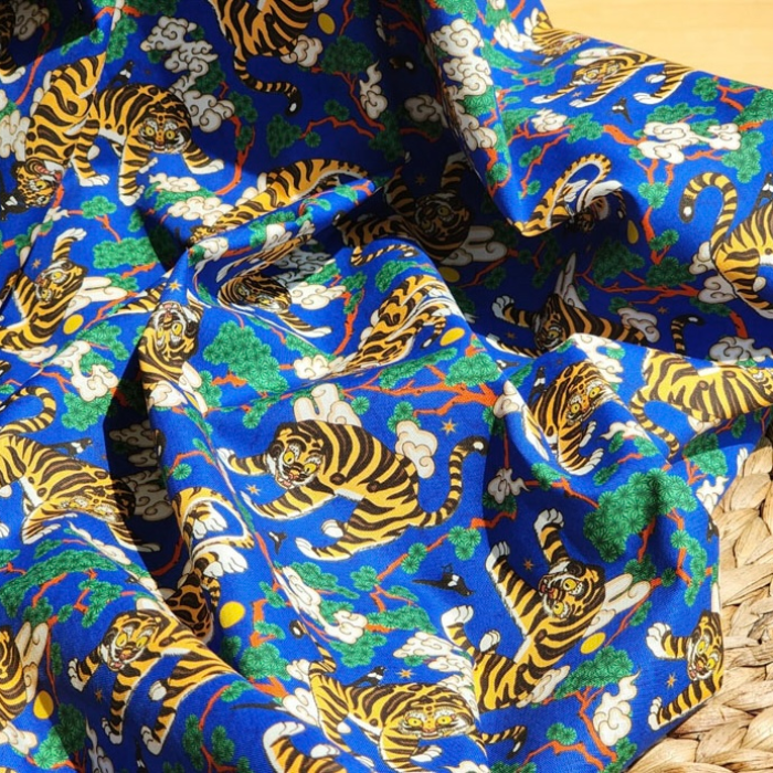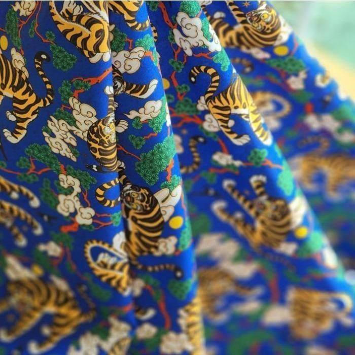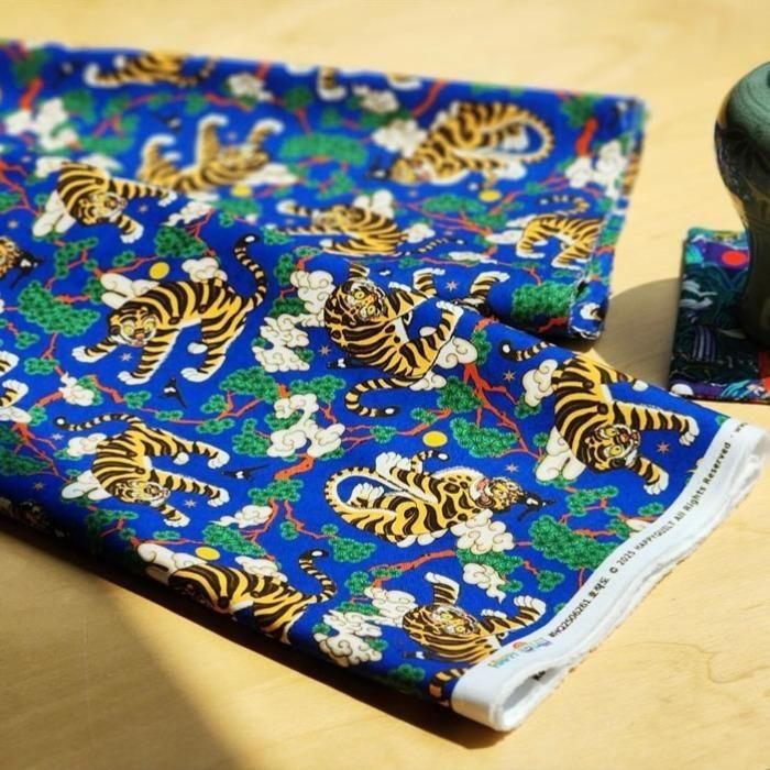ブルー イエロー 伝統モチーフ カササギ 虎 韓国生地