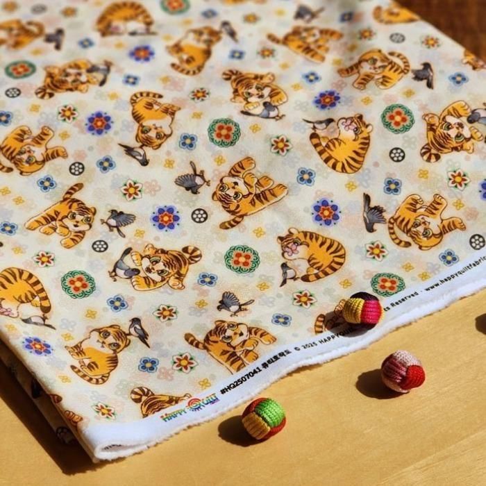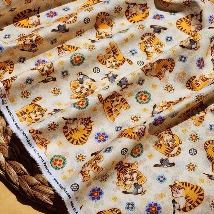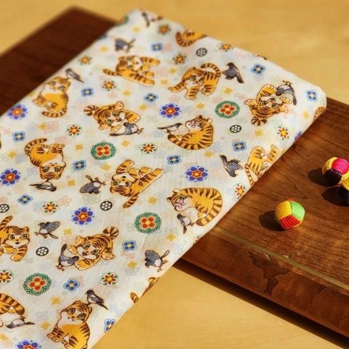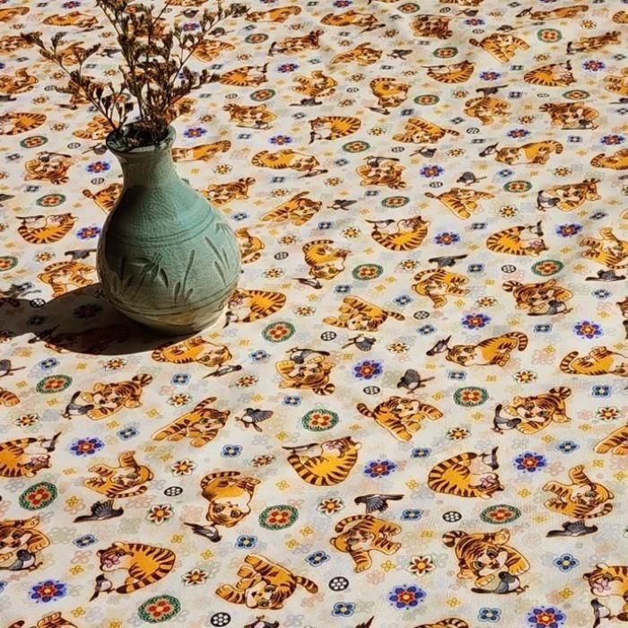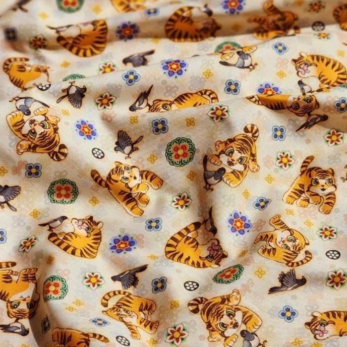 イエロー 伝統モチーフ かわいい 虎 韓国生地