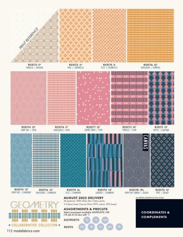 【Ruby Star】Geometry-RS5170JR 約6.3×110cm(40枚入) moda カットクロスセット 線 ストライプ ドット 幾何学な柄が勢ぞろい