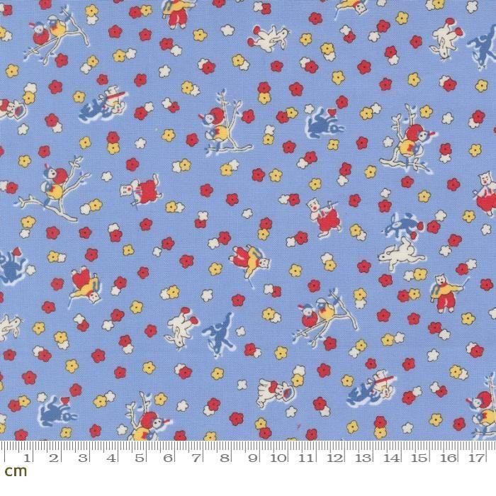【Moda-k モダ】30s Playtime 2025-23373-17(3A-05)花柄 小花柄 うさぎ 小鳥 犬 猫 レトロ カラフル かわいい シーチング 110cm幅