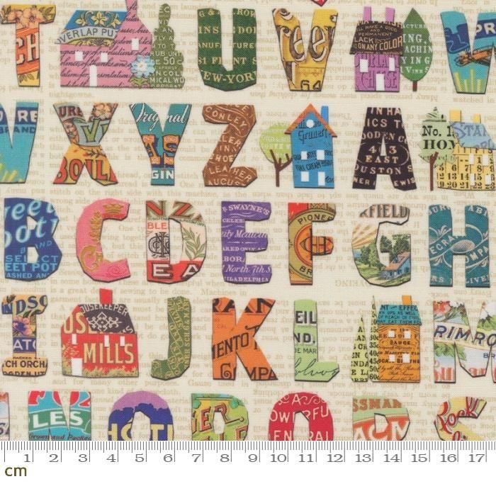 【Moda-k モダ】Paper Hamlet-39564-11(3A-05)アルファベット 建物 花 クラフト ペーパークラフト 英字柄 カラフル ヴィンテージ風 かわいい シーチング 110cm幅