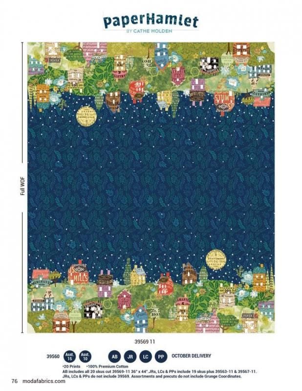 【Moda-k モダ】Paper Hamlet-39566-12(3A-05)建物 植物 リーフ クラフト ペーパークラフト 英字柄 カラフル ヴィンテージ風 かわいい シーチング 110cm幅