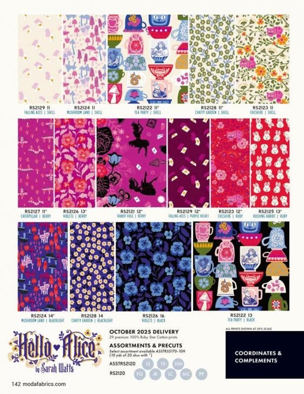 【Ruby Star】Hello Alice-RS2120JR 約6.3×110cm(40枚入) moda カットクロスセット おとぎ話 不思議 楽しい 柄が勢ぞろい