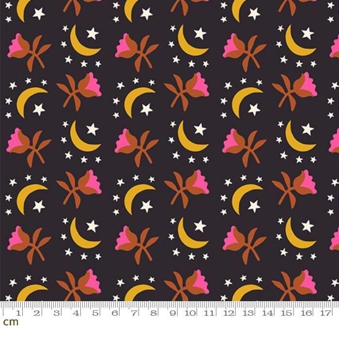 【Ruby Star】Catnap-RS4133-16(3A-05)花柄 星柄 月ブラック イエロー ピンク ホワイト かわいい ポップ シーチング 110cm幅