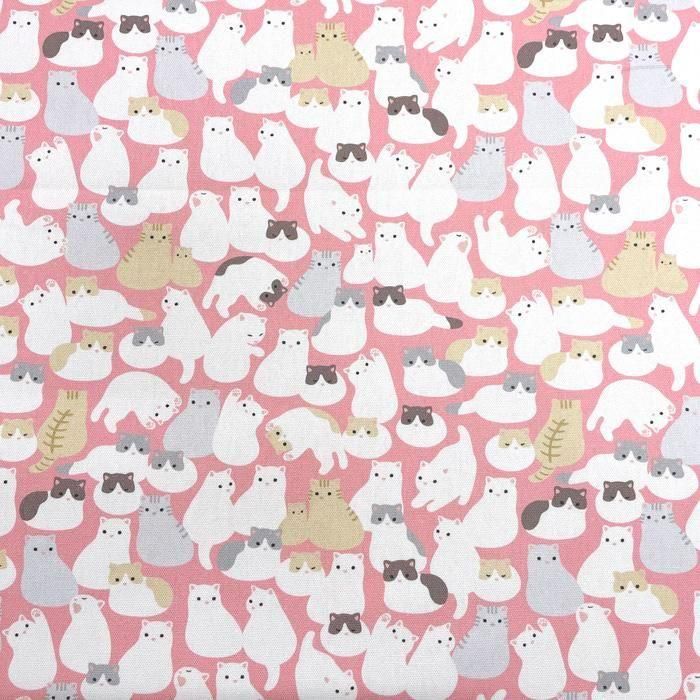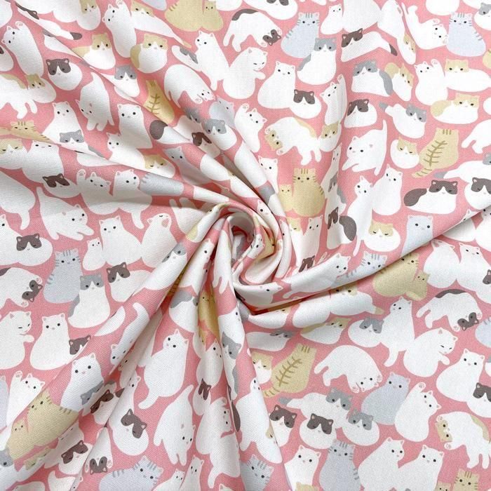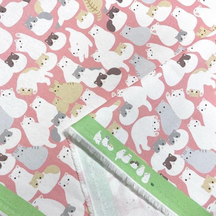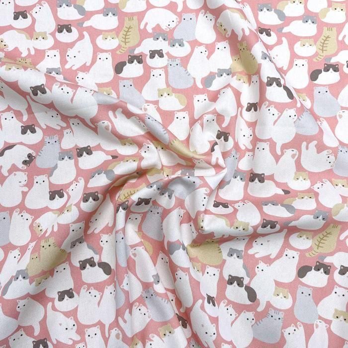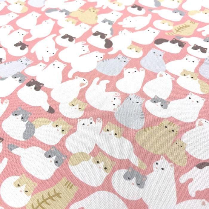 【abeille】もちもちネコ ab100-03-02x(3D-03) 猫柄 かわいい ピンク オックス生地 110cm幅