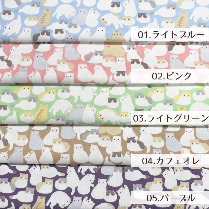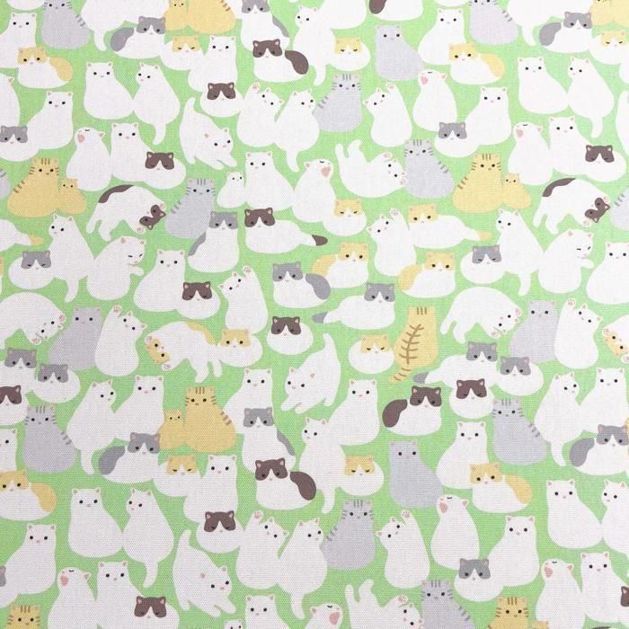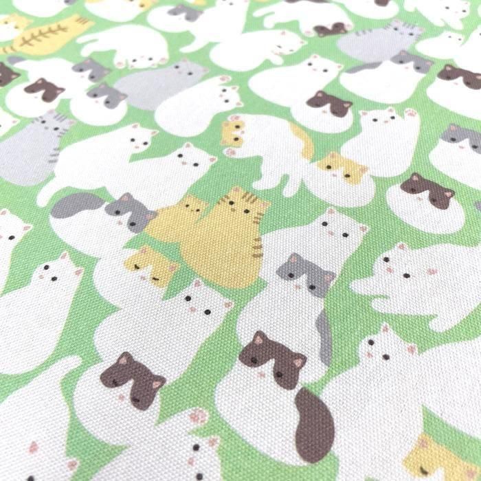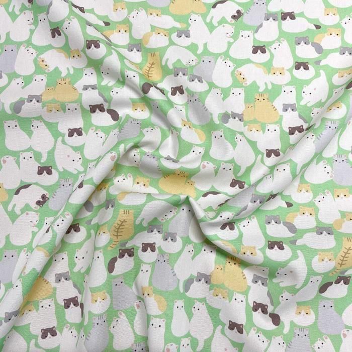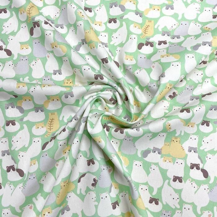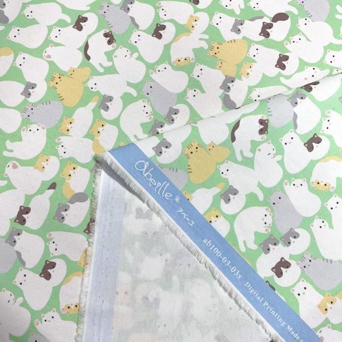 【abeille】もちもちネコ ab100-03-03x(3D-03) 猫柄 かわいい ライトグリーン オックス生地 110cm幅