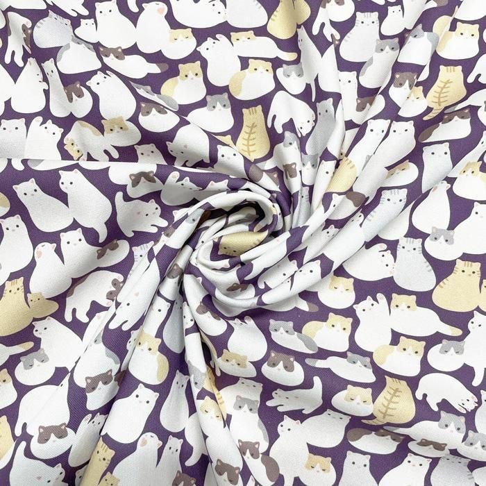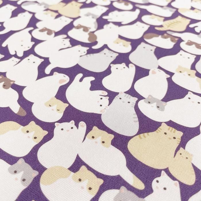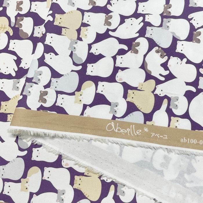 【abeille】もちもちネコ ab100-03-05x(3D-03) 猫柄 かわいい パープル オックス生地 110cm幅