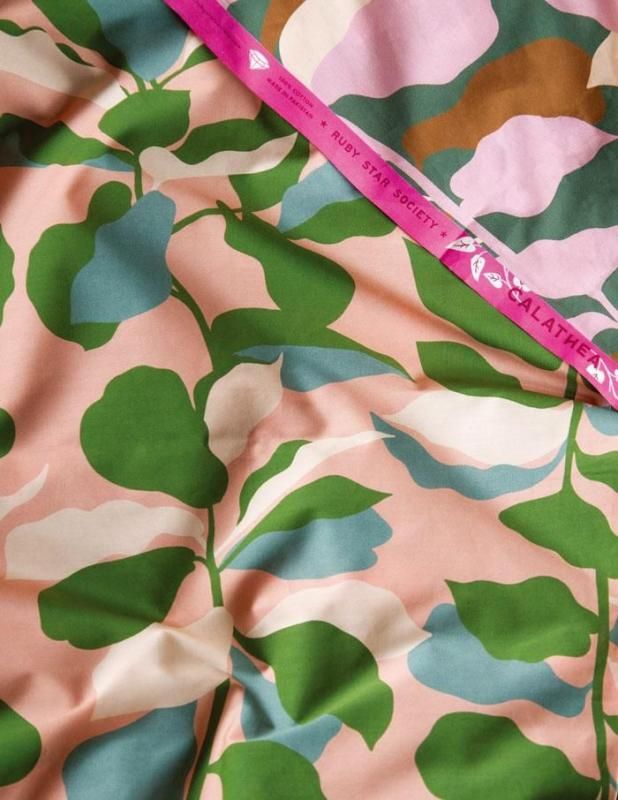 【Ruby Star】Calathea-RS5182-13(3A-03)植物 観葉植物 葉っぱ リーフ柄 鉢植え プランター カラフル ポップ かわいい シーチング 110cm幅