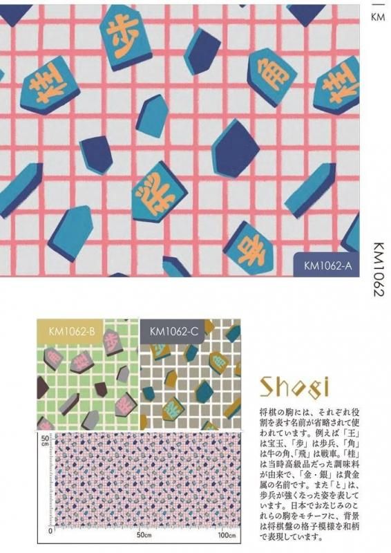 日本でおなじみのこれらの駒をモチーフに、背景は将棋盤の格子模様を和柄で表現しています。