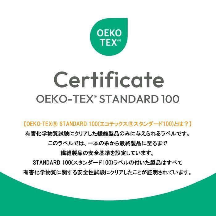 STANDARD 100(スタンダード100)ラベルの付いた製品はすべて、有害化学物質に関する安全性試験にクリアしたことが証明されています。