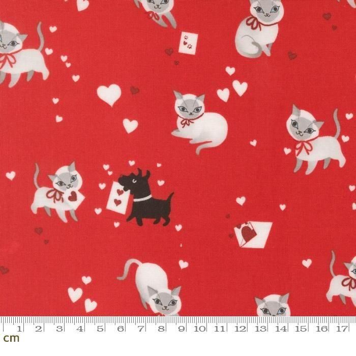 【Moda-k モダ】Funny Valentine-37140-16(3A-03)ねこ 犬 ハート 手紙 ラブレター バレンタイン かわいい シーチング 110cm幅