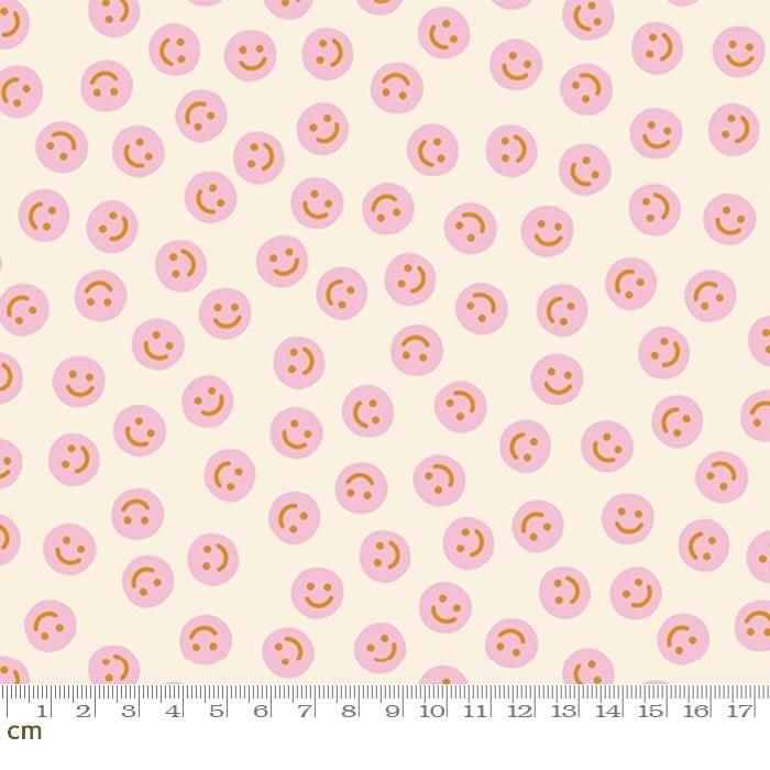 スマイリー にこちゃんマーク 顔柄 笑顔 ピンク ポップ かわいい カラフル シーチング 110cm幅 パッチワーク ハンドメイド ルビースター