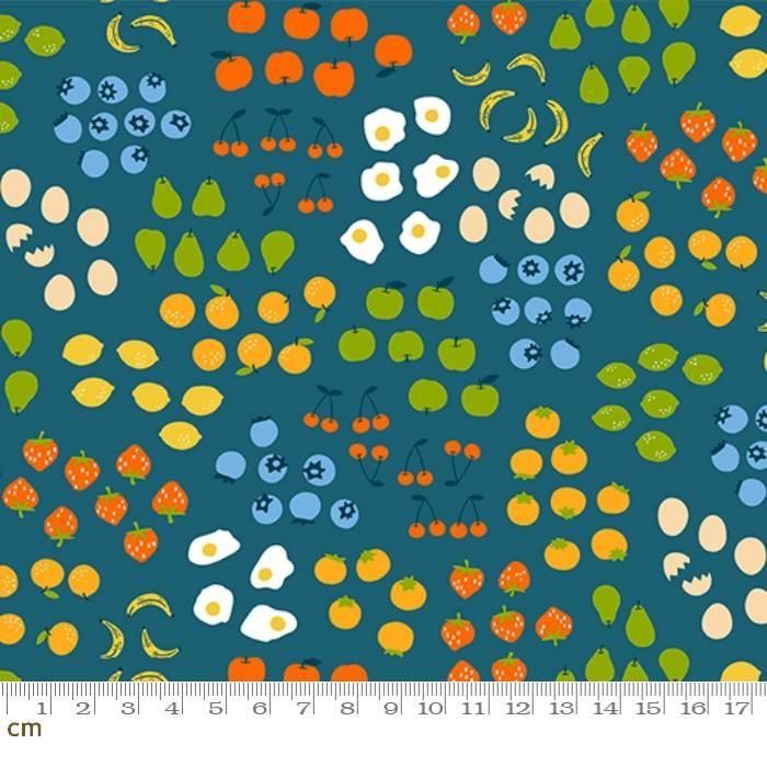 食べ物柄 フルーツ 目玉焼き りんご オレンジ バナナ いちご レモン ブルーベリー 梨 個性的 面白い ポップ かわいい シーチング 110cm幅 パッチワーク ハンドメイド ルビースター