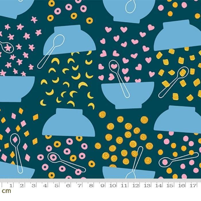 食べ物柄 お皿 ボウル スプーン 食器 シリアル お菓子 ハート 星 三日月 個性的 面白い ポップ かわいい シーチング 110cm幅 パッチワーク ハンドメイド ルビースター