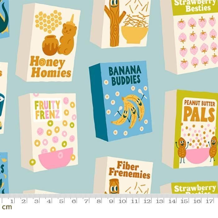 食べ物柄 パッケージ シリアル フルーツ 個性的 面白い ポップ かわいい シーチング 110cm幅 パッチワーク ハンドメイド ルビースター