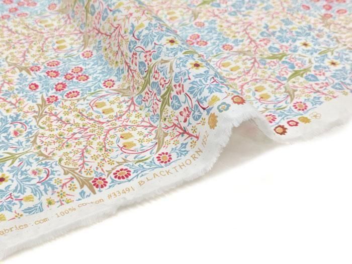ウィリアム・モリス ブラックトーン柄 植物柄 スカイブルー系