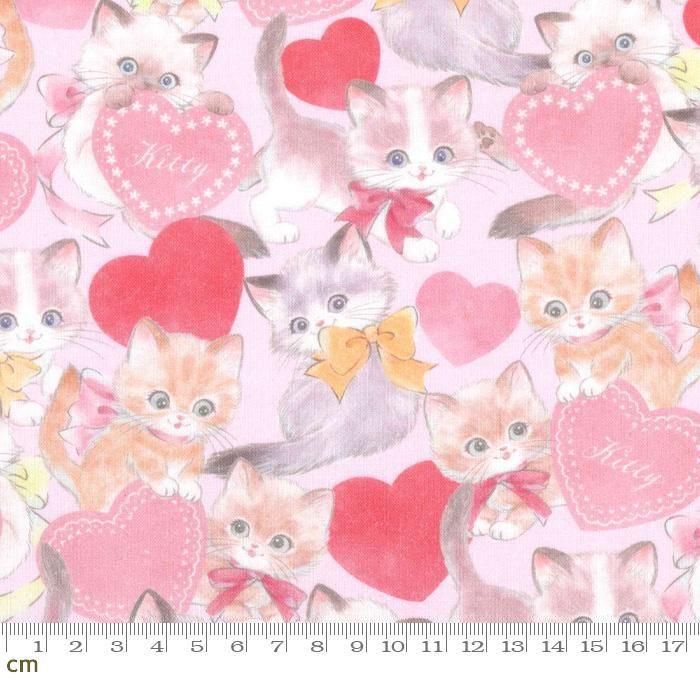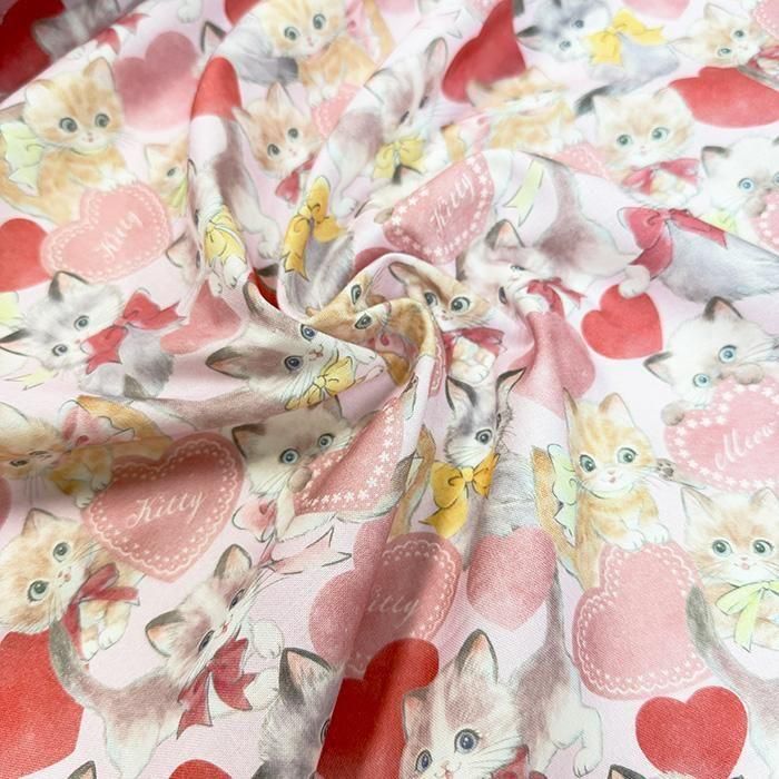 【さらら】 sarara-511290-B(3C-01) 可愛い 猫柄 ハート シーチング 110cm幅