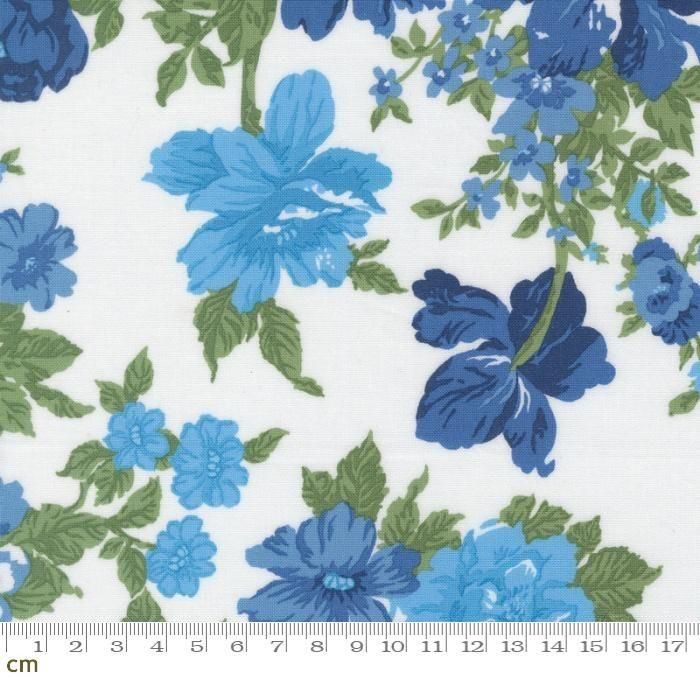 【Moda-k モダ】Blueprint-55330-11(3A-07)花柄 リーフ柄 ホワイト系 ブルー系 エレガント ヴィンテージ シーチング 110cm幅