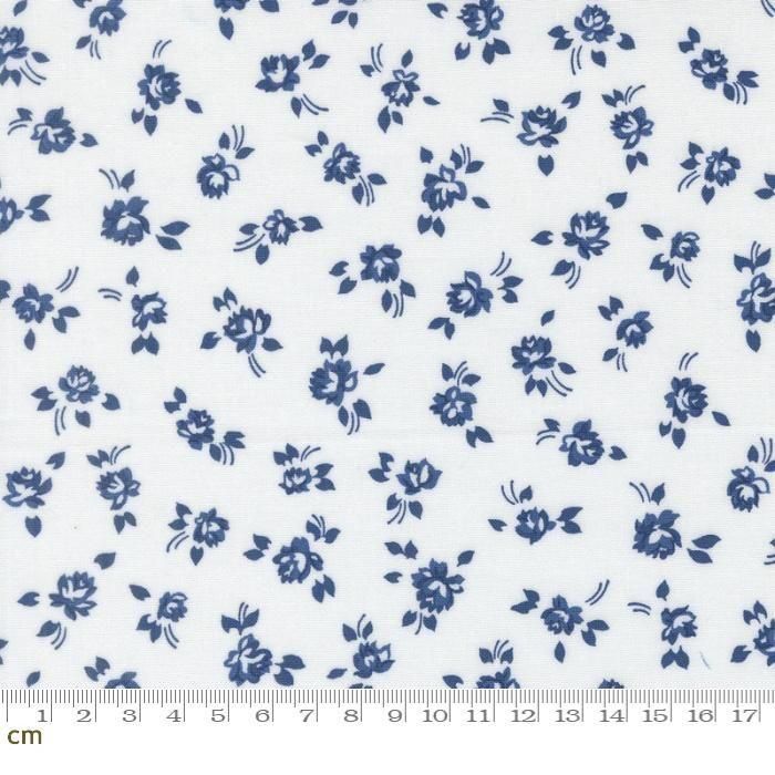 【Moda-k モダ】Blueprint-55331-26(3A-07)花柄 小花柄 ホワイト系 ブルー系 ネイビー 薔薇 ローズ ミニバラ エレガント ヴィンテージ シーチング 110cm幅